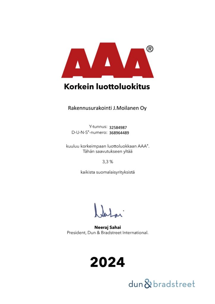 Sekä kuulumme korkeimpaan LUOTTOLUOKKAAN johon yltää vain hyvin harvat yritykset